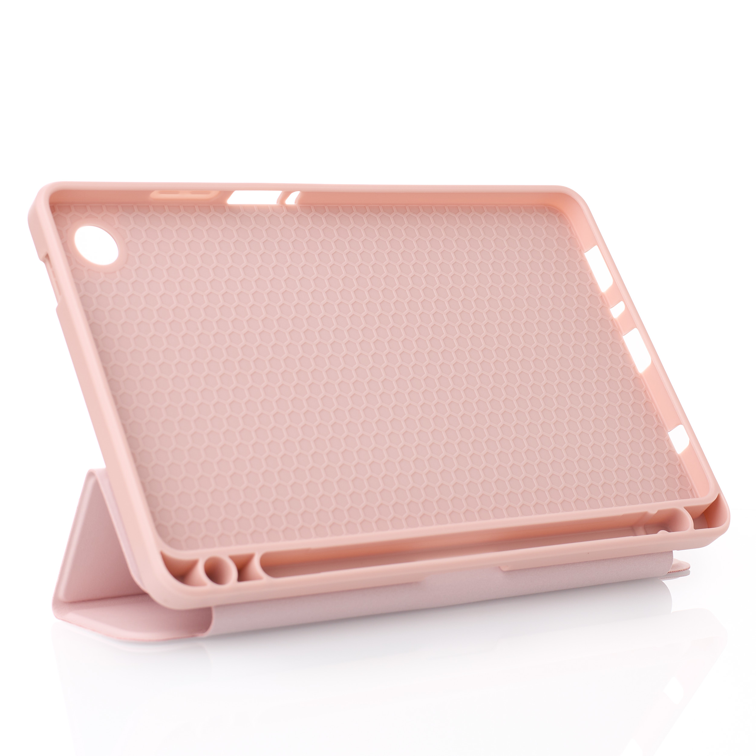 Чехол надёжно охватывает планшет со всех сторон. Изготовленный из комбинации высококачественной эко-кожи и прочного силикона, он обеспечивает оптимальное сочетание эстетики и практичности. Внешняя поверхность из эко-кожи приятна на ощупь и придаёт вашему планшету стильный вид, а силиконовый каркас надёжно фиксирует устройство и защищает его от ударов.