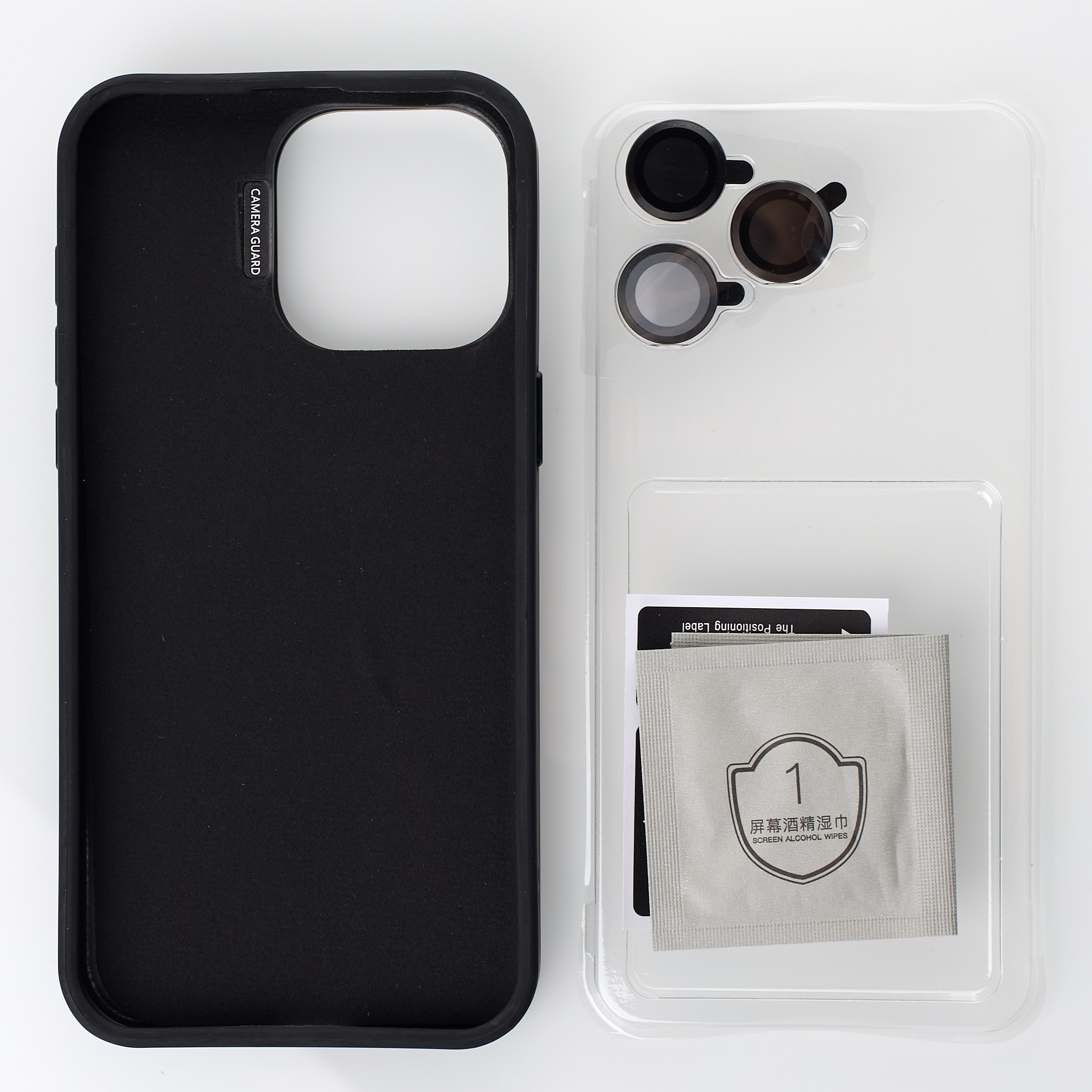 Особенностью этого чехла являются защитные линзы для камеры, которые идут в комплекте вместе с набором салфеток и стикером для нанесения. Линзы идеально сочетаются с бортиками чехла и металлической рамкой вокруг камеры.