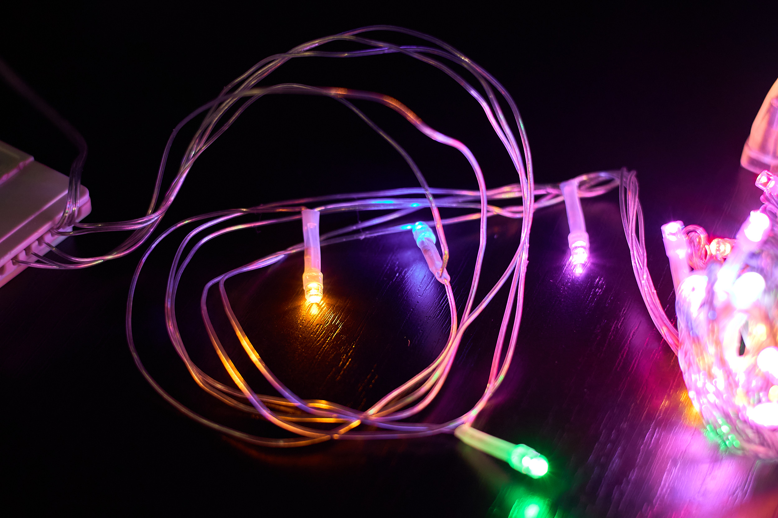 Тонкий Провод: Тонкий, почти невидимый провод (намотан на катушку) легко маскируется в декоре, делая видимым только сияние огней.
